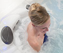 Dieses hochwertige Whirlpool-Stereosystem beinhaltet zwei eingebaute, wasserbeständige Lautsprecher und einen Subwoofer. Verfügbare Funktionen sind FM-Radio und Bluetooth®, die beide über ein wetterfestes Touchpad gesteuert werden.